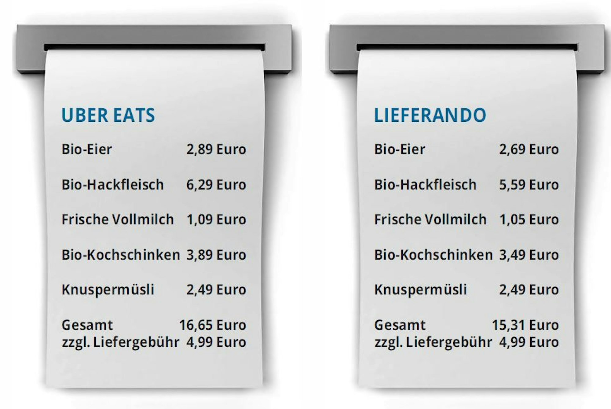 Für die Kunden ist die Partnerschaft aber aus einem anderen Grund interessant - oder verwirrend, je nach Betrachtungswinkel: Wer Rewe-Lebensmittel bestellen will, kann sie nicht nur von Rewe selbst oder Lieferando bringen lassen, sondern auch von Flink oder Uber Eats. Auf jeder Plattform gibt es unterschiedliche Preise, und selbst innerhalb der Rewe-Märkte hängen an gleichen Produkten oft unterschiedliche Preisschilder. So kann es sein, dass eine Packung Kekse in Köln teurer ist als in Gummersbach.