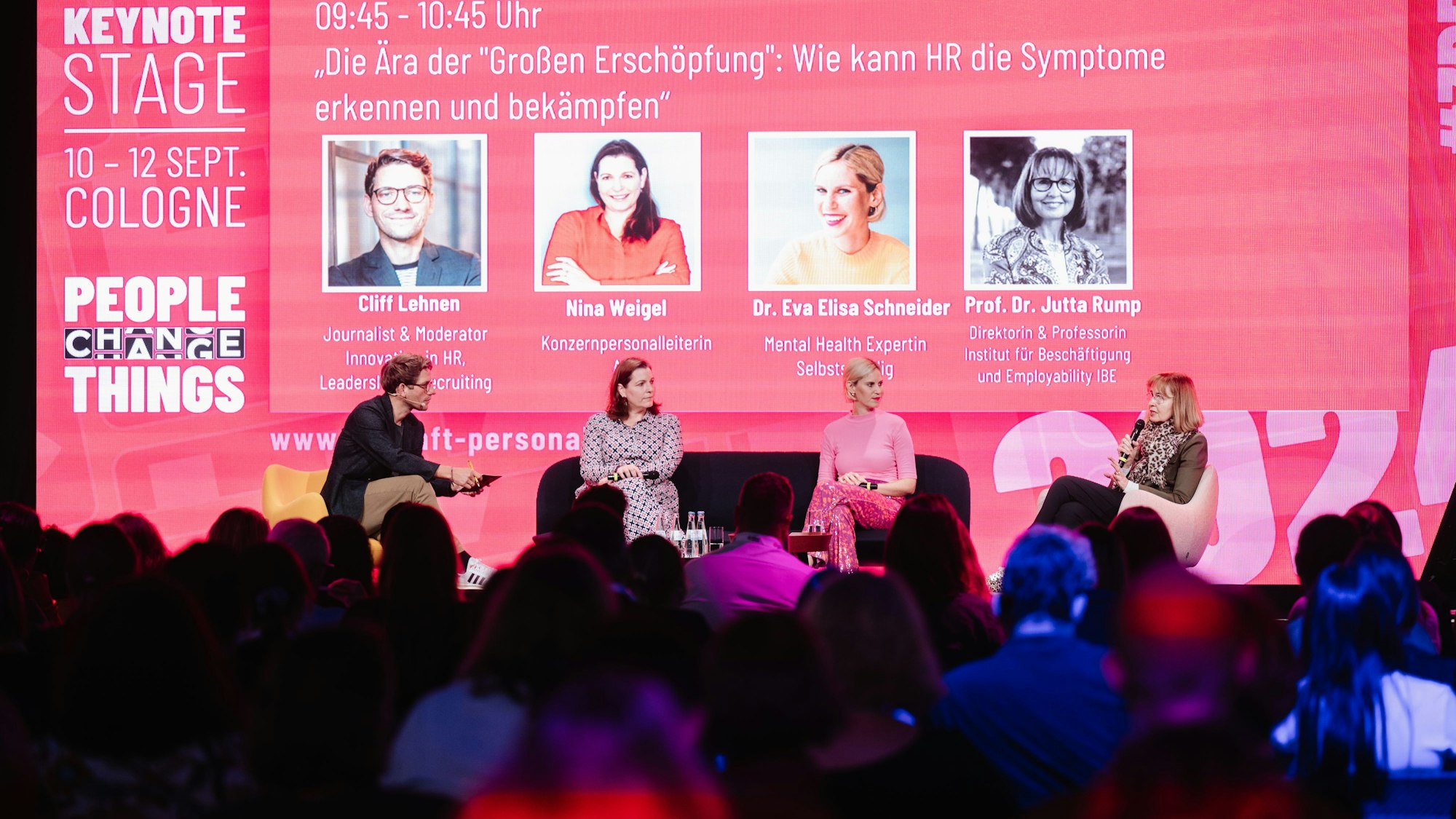 Dass sich der erste Vortrag auf der Hauptbühne um die mentale Gesundheit der Mitarbeitenden dreht, zeigt die Brisanz des Themas für Unternehmen und Personalabteilungen. Laut einer 2023 veröffentlichten Studie des „McKinsey Health Institute“ klagen 37 Prozent aller Beschäftigten in Deutschland über körperliche und geistige Erschöpfung. Die Techniker-Krankenkasse hat ermittelt, dass jede dort versicherte Erwerbsperson im Jahr 2023 im Schnitt 19,4 Tage arbeitsunfähig war – davon 3,59 Tage unter der Diagnose einer psychischen Störung. Neben den Folgen der Coronabeschränkungen werden von den Ärzten allgemein die Auswirkungen auf die aktuellen Krisen genannt, aber auch erhöhter Arbeitsdruck und wirtschaftliche Sorgen.
