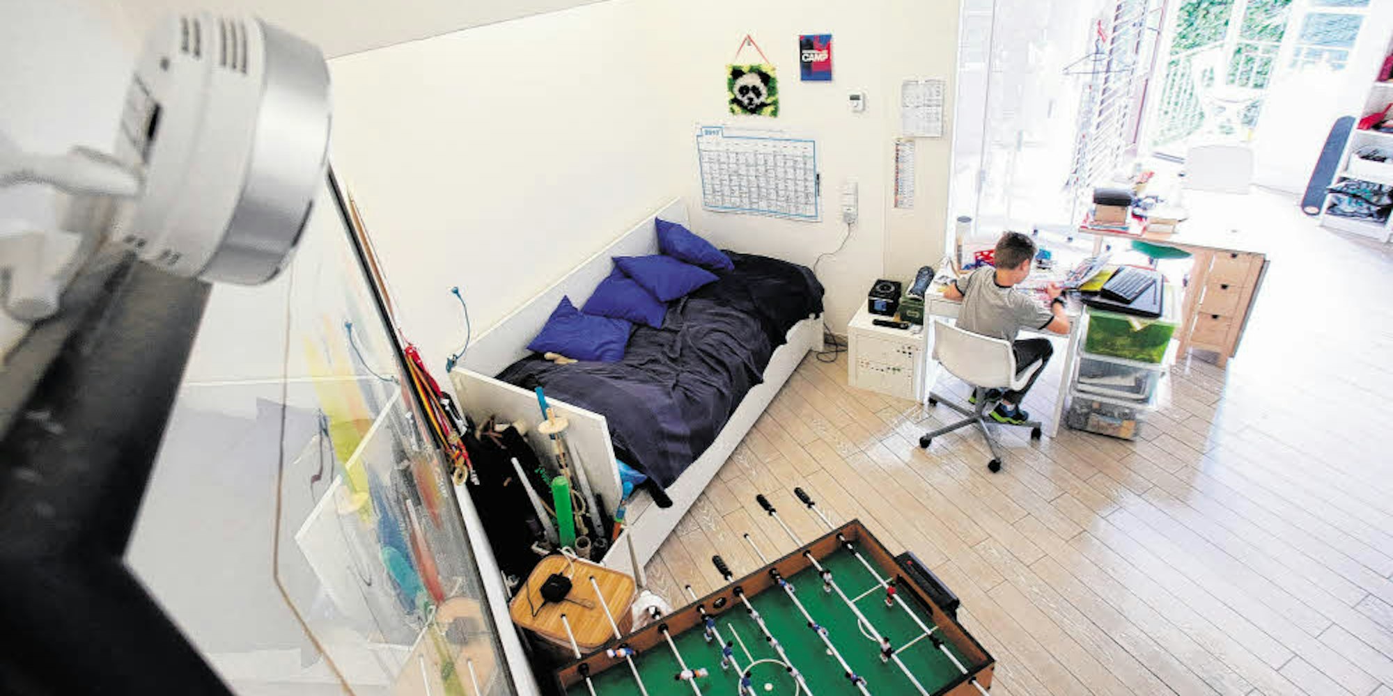 Wenn Henri in seinem Zimmer Hausaufgaben macht, können seine Eltern das sehen – über die installierte Kamera.
