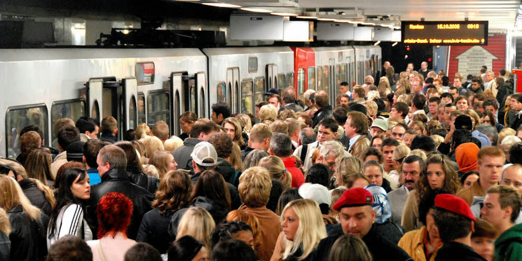 Pendler morgens in der Kölner U-Bahn