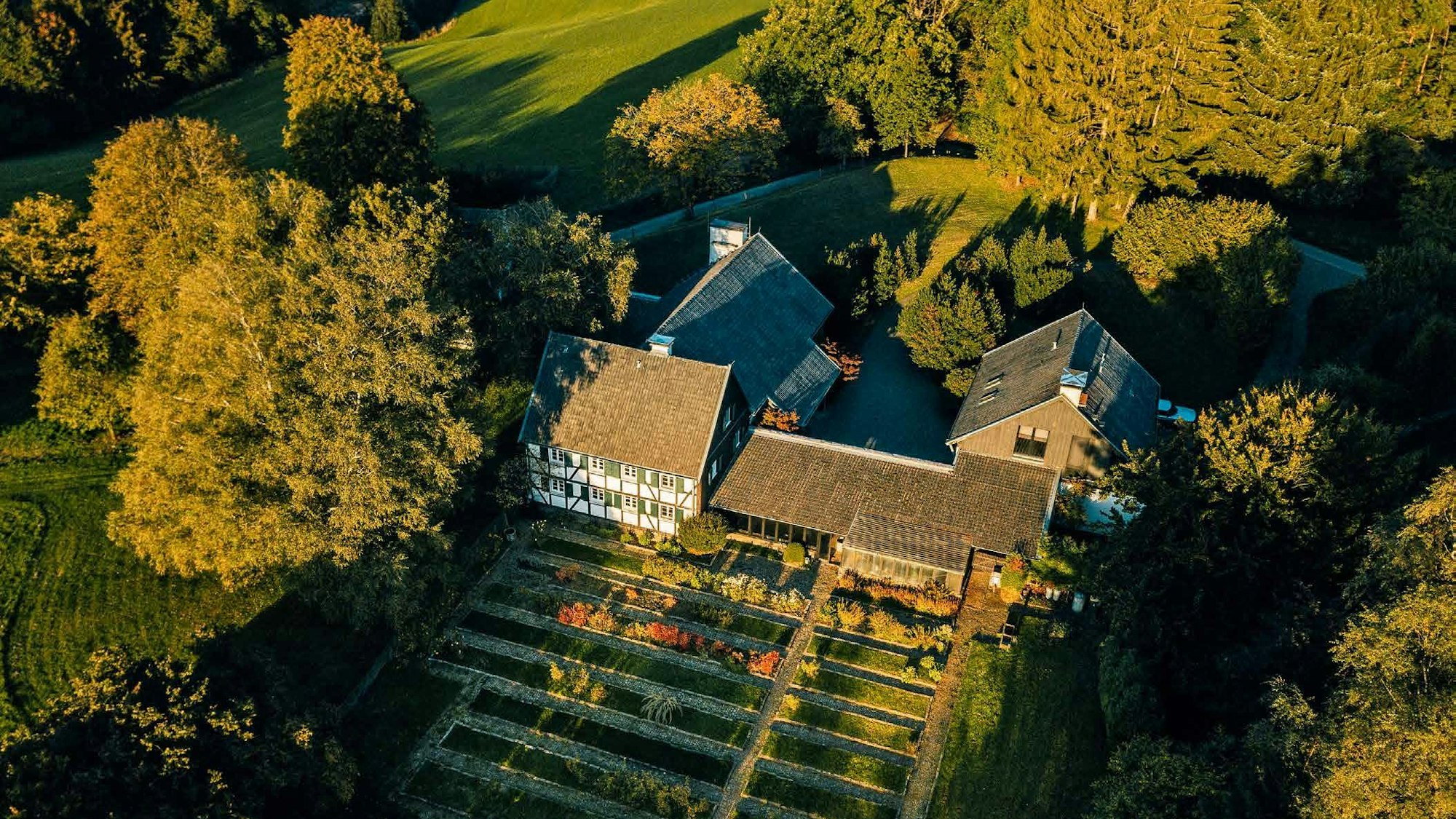 Auf einem Hochplateau mit Blick auf die Hügel des Bergischen Landes liegt eine Hofanlage, die wirkt, als wäre sie einem Historienfilm entsprungen. Auf einem 24 Hektar großen Grundstück befinden sich ein Haupthaus mit fünf Zimmern, ein Gästehaus mit vier Zimmern sowie eine 140 Quadratmeter große Scheune. Der Hof stammt aus dem Jahr 1880, wurde 1974 aber kernsaniert. Einziges Manko: Dementsprechend alt ist auch die verbaute Ölheizung. Der Ort Overath liegt zehn Kilometer von entfernt.