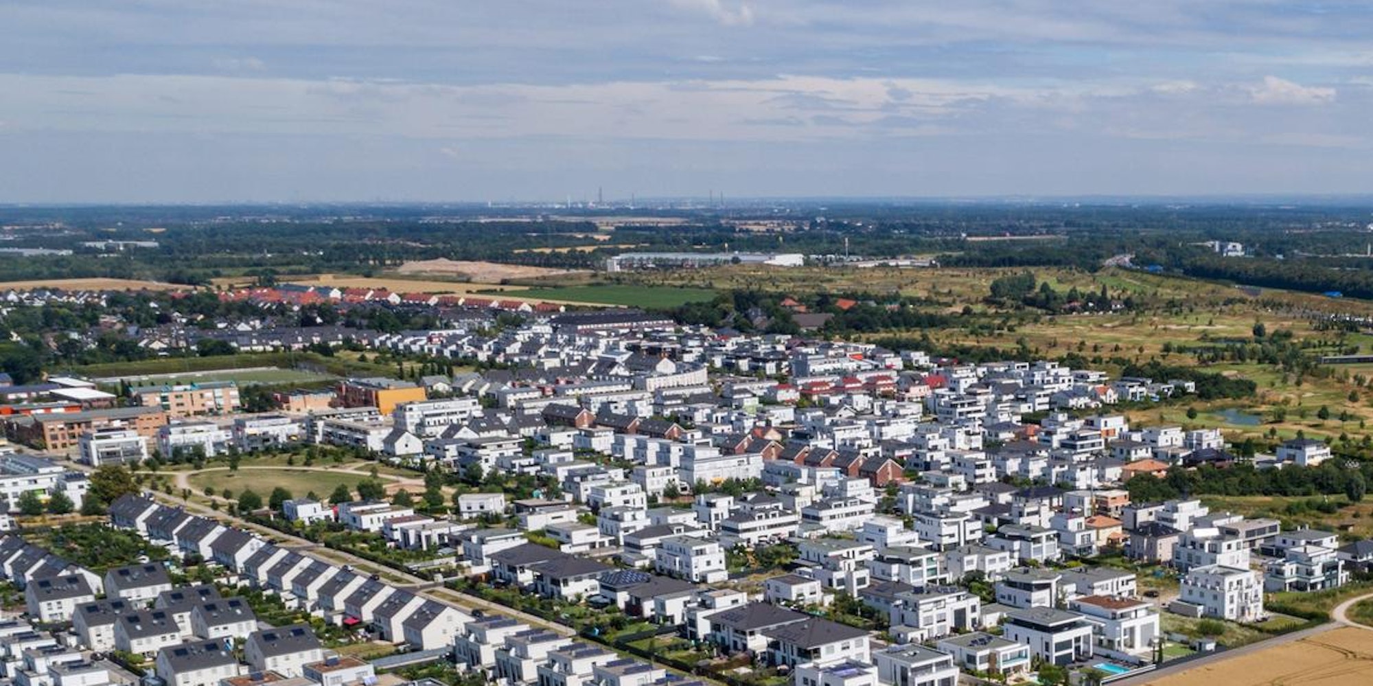 Das Neubaugebiet „Prima Colonia“ in Köln-Widdersdorf auf einer Luftaufnahme von 2018.
