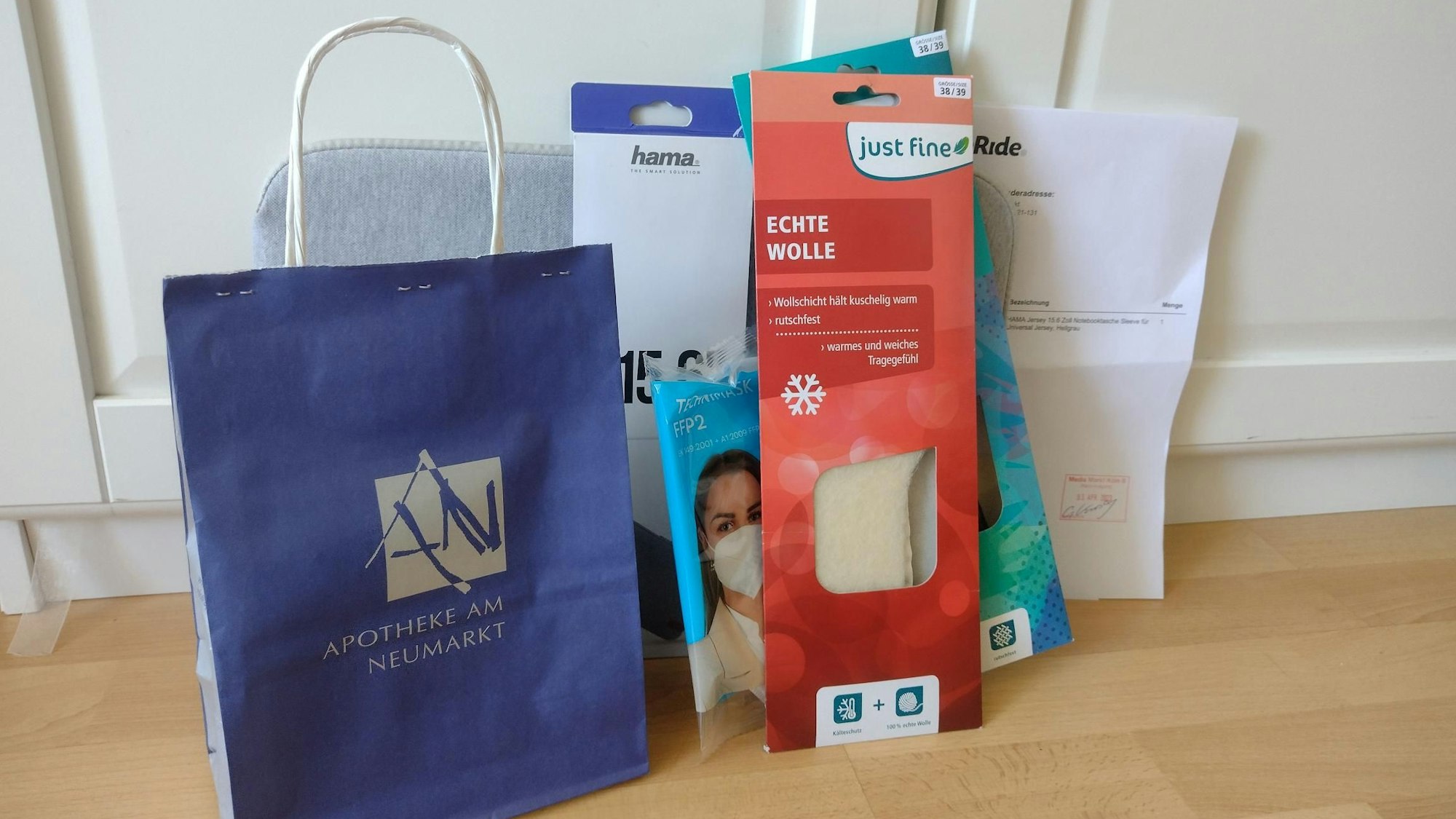 Bezahlung und Lieferung funktionieren problemlos. Die Bezahloptionen sind vielfältig, akzeptiert werden Paypal, Google Pay, Klarna, Mastercard und Visa. Um 14.45 Uhr und damit pünktlich im Lieferfenster 14 bis 15 Uhr klingelt dann ein Kurier des Logistikpartners Lamica. Großes Plus: Die Ware wird lose und ohne Extra-Verpackung übergeben, lediglich die Ware aus der Apotheke steckt in einer kleinen Papiertüte. Auch sonst gibt es Nachhaltigkeitspunkte: Die Zustellung erfolgt CO2-neutral und mitarbeiterfreundlich mit dem E-Lastenrad. Wünschenswert wäre allerdings eine in den Bezahlvorgang eingebettete Möglichkeit, Trinkgeld zu geben. Das gerät an der Tür manchmal in Vergessenheit, vor allem, weil das bargeldlose Trinkgeld in anderen Liefer-Apps mittlerweile üblich ist.