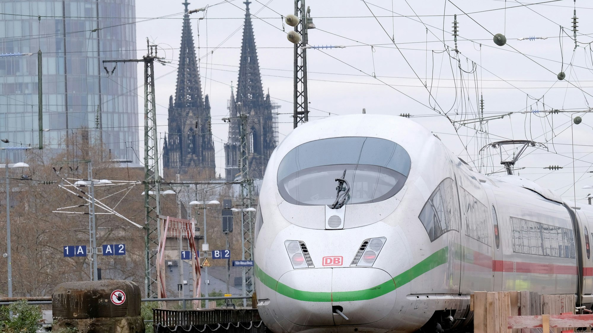 Ein ICE der Deutschen Bahn verlässt den Bahnhof Deutz.