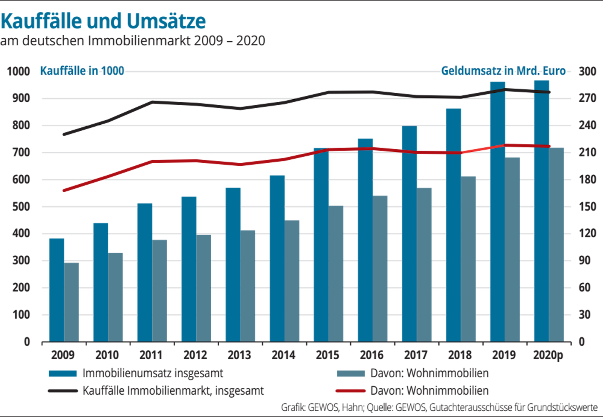 Die Kauffälle und Umsätze am deutschen Immobilienmarkt.