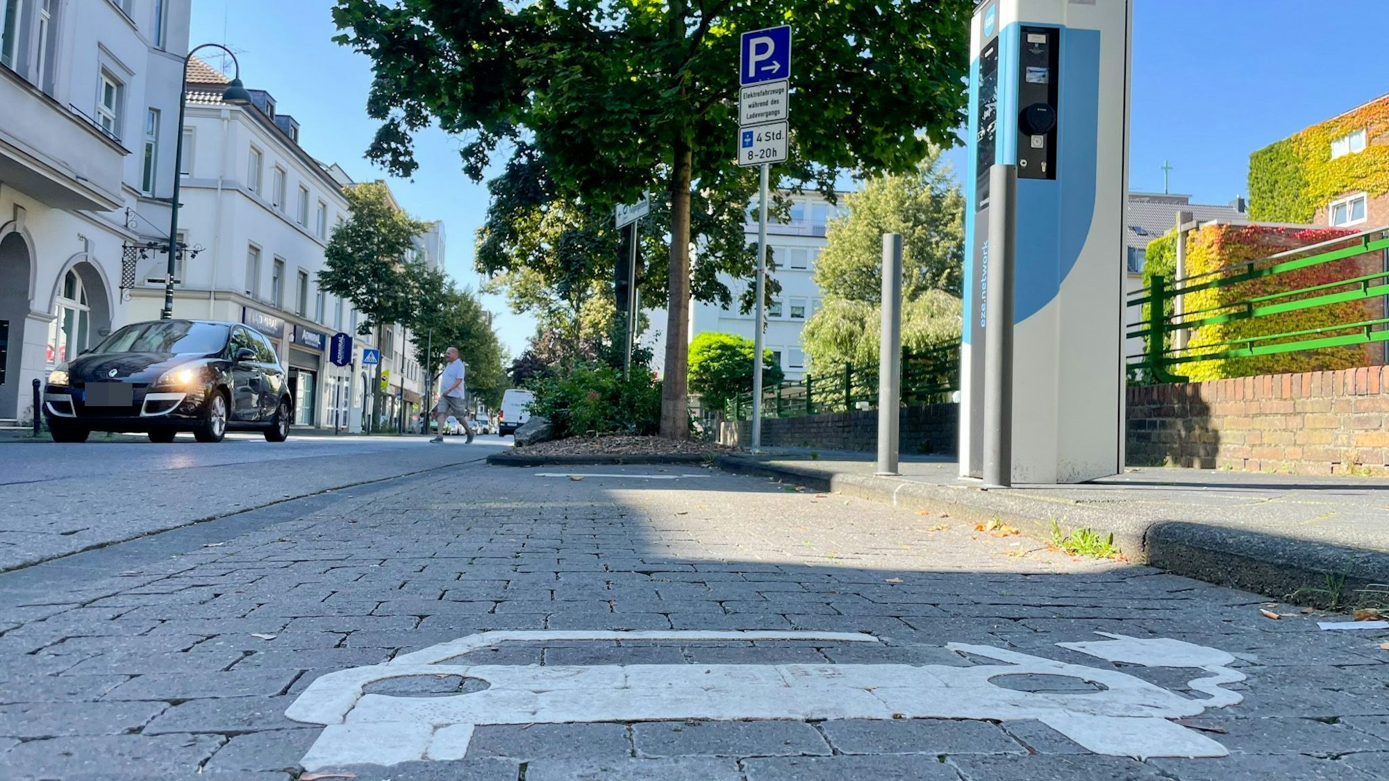 Eine E-Ladesäule in Leverkusen: Die Stadt bildet im nrw-weiten Vergleich beim Ausbau der Ladeinfrakstruktur das Schlusslicht.