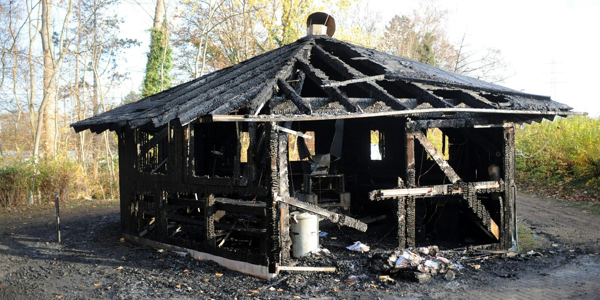 Die Flammen zerstörten die Grillhütte im Sportpark Herbertskaul.