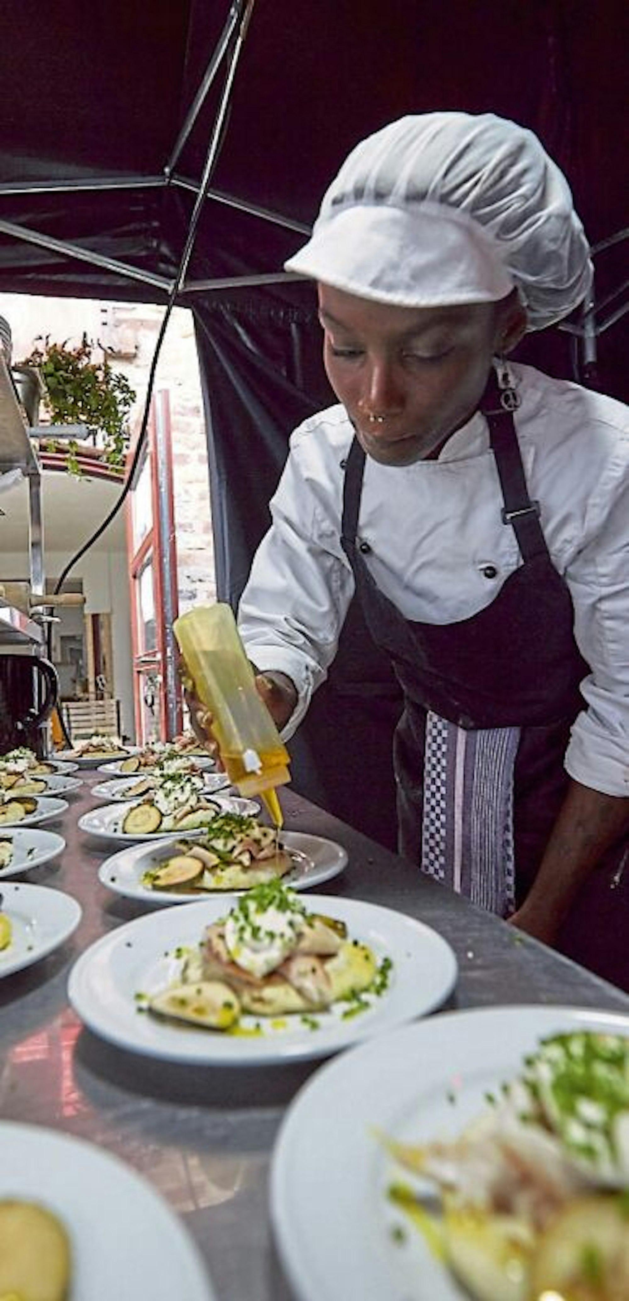 Die Vorspeisen richtet Noa Mey an, die in der Zeltküche hilft.
